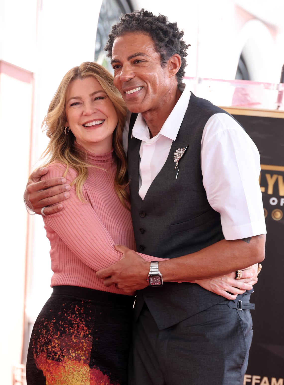 Ellen Pompeo and Chris Ivery attend the ceremony honoring Ellen Pompeo with a Star on the Hollywood Walk of Fame on April 29, 2025 in Hollywood, California