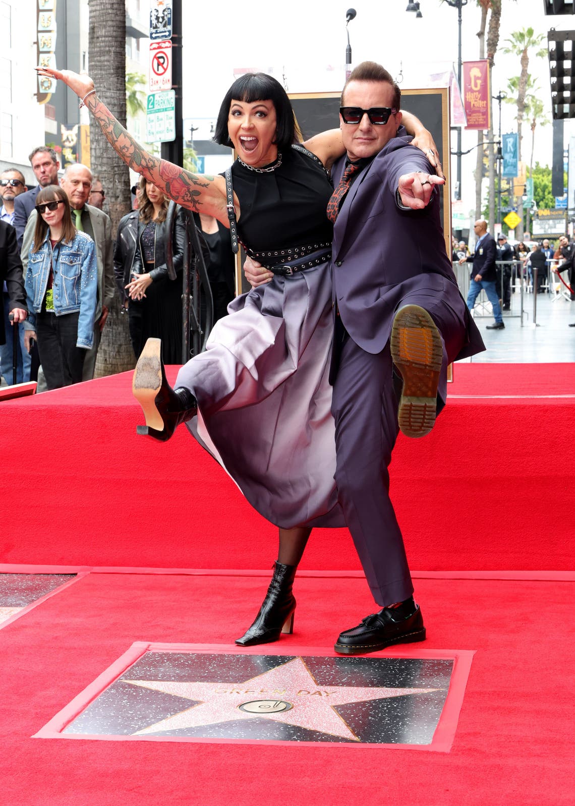 Sara Rose Lipert and Tré Cool attend the Green Day Hollywood Walk of Fame Star Ceremony on May 1, 2025 in Hollywood, California