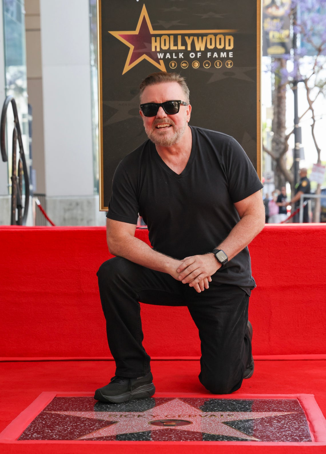 Ricky Gervais honored with Star on the Hollywood Walk of Fame on May 30, 2025 in Hollywood, California