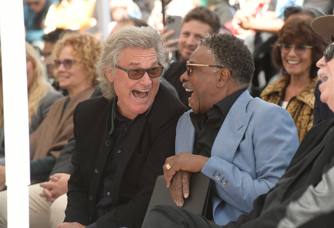 Kurt Russell and Keith David attend the ceremony honoring John Carpenter with a star on the Hollywood Walk of Fame on April 3, 2025 in Hollywood, California
