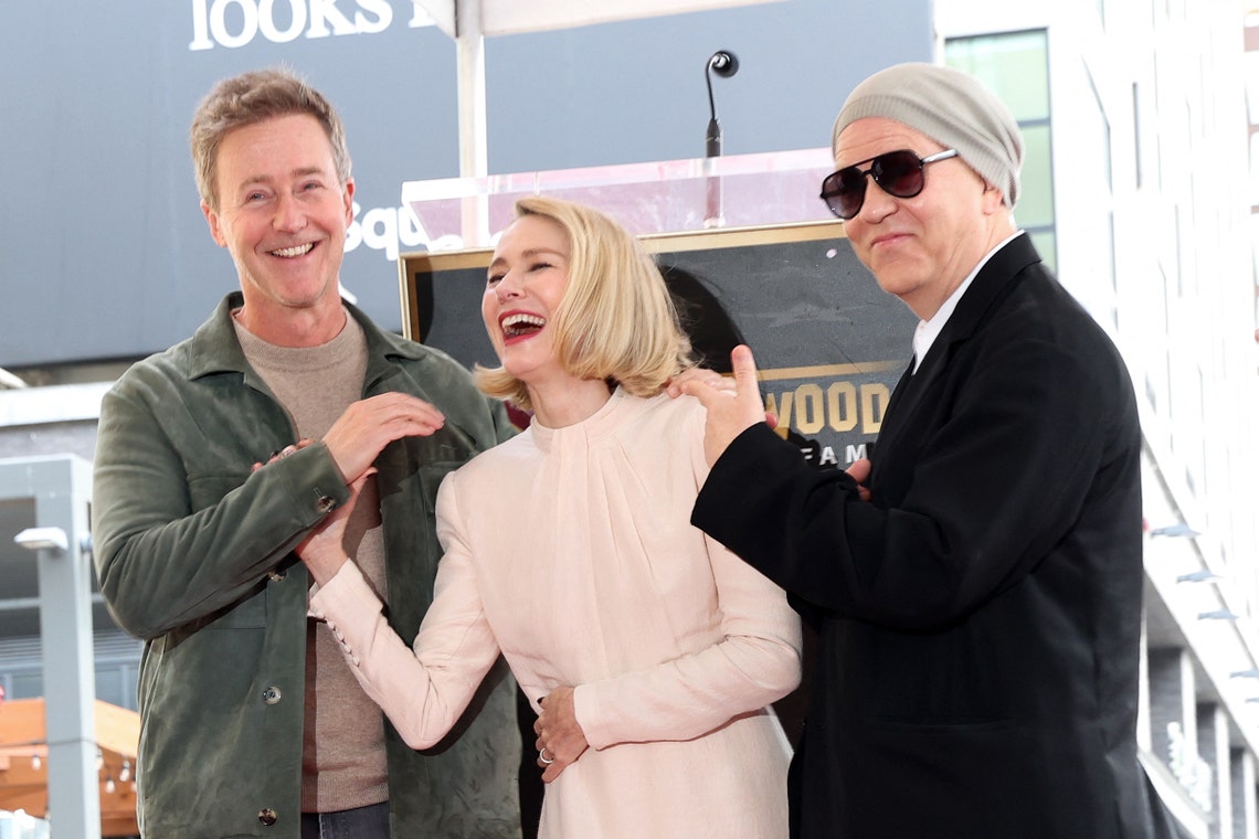 Edward Norton, Naomi Watts, and Ryan Murphy attend Watts’ Hollywood Walk of Fame Star Ceremony in Los Angeles, California, on October 13, 2025
