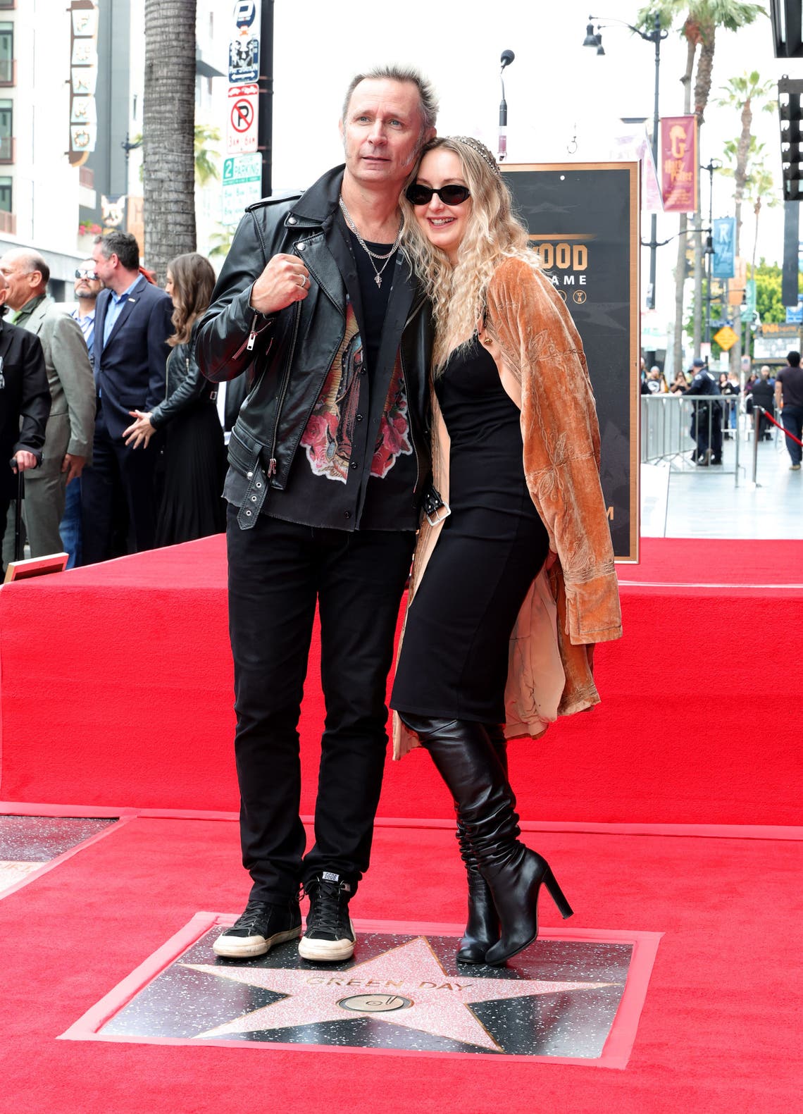 Mike Dirnt and Brittney Cade attend the Green Day Hollywood Walk of Fame Star Ceremony on May 1, 2025 in Hollywood, California