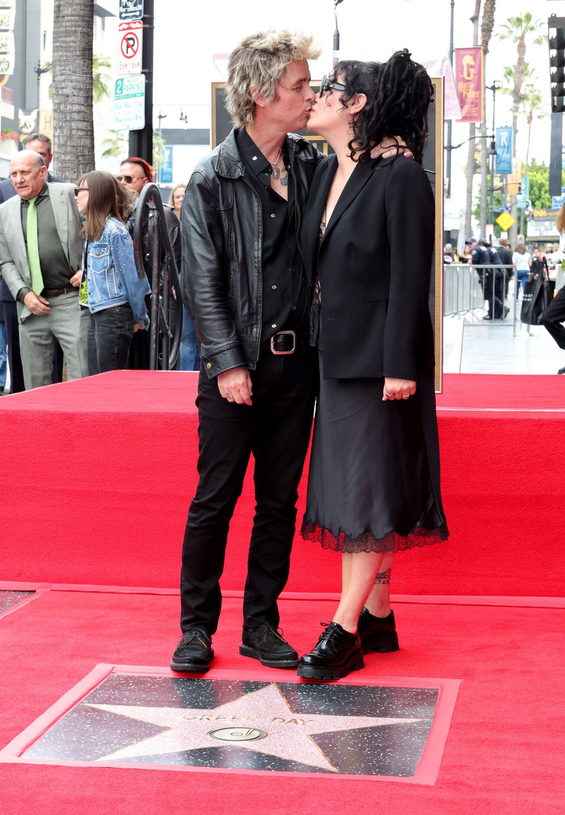 Billie Joe Armstrong and Adrienne Armstrong attend the Green Day Hollywood Walk of Fame Star Ceremony on May 1, 2025 in Hollywood, California