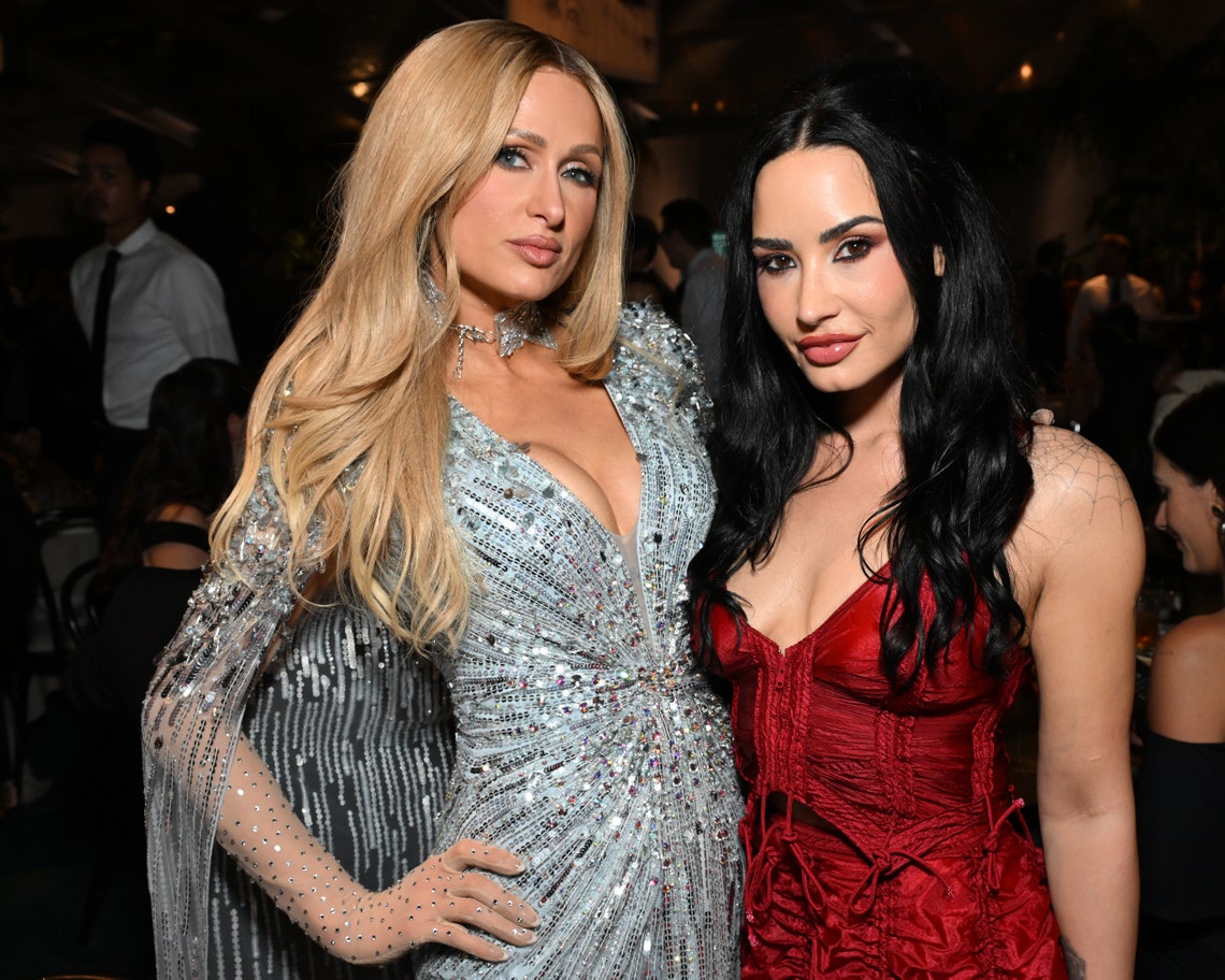 Paris Hilton and Demi Lovato attend the 2025 Baby2Baby Gala Presented By Paul Mitchell at Pacific Design Center on November 08, 2025 in West Hollywood, California