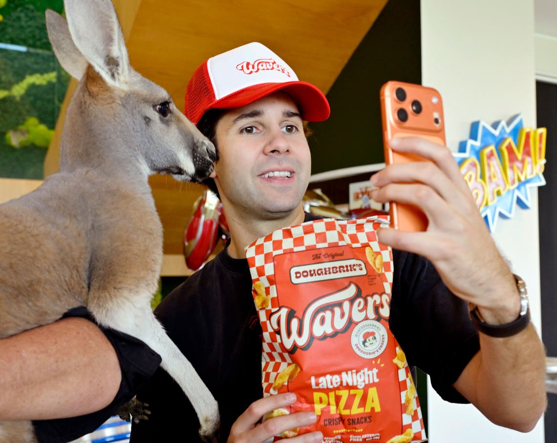 David Dobrik brought a taste of Australia to Los Angeles with Hopalong Kassidy the Kangaroo., celebrating the launch of his Doughbrik’s ‘Wavers’ Snack Brand now available in 7-Eleven stores across Australia just in time for Australian National 7-Eleven Day!