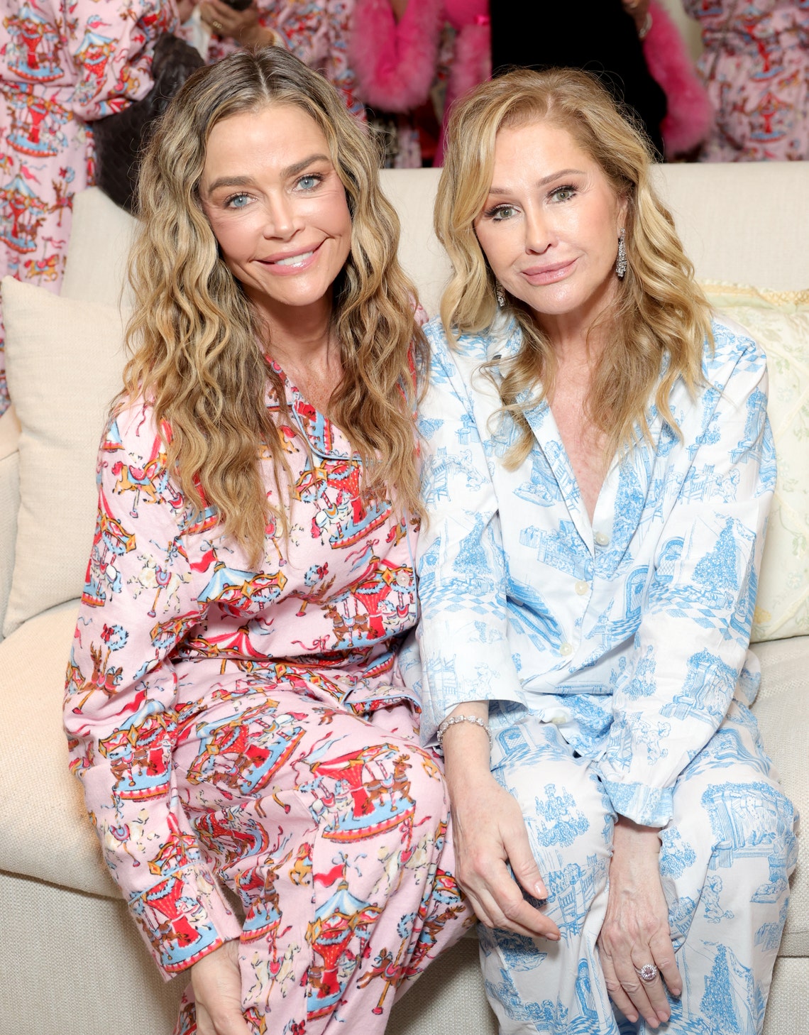 Denise Richards and Kathy Hilton (in Printfresh x Kathy Hilton Pajamas) got in the holiday spirit at Hilton’s annual Pajama Party presented by QVC, where guests took home Anna Zuckerman jewelry and Slatkin + Co candles.