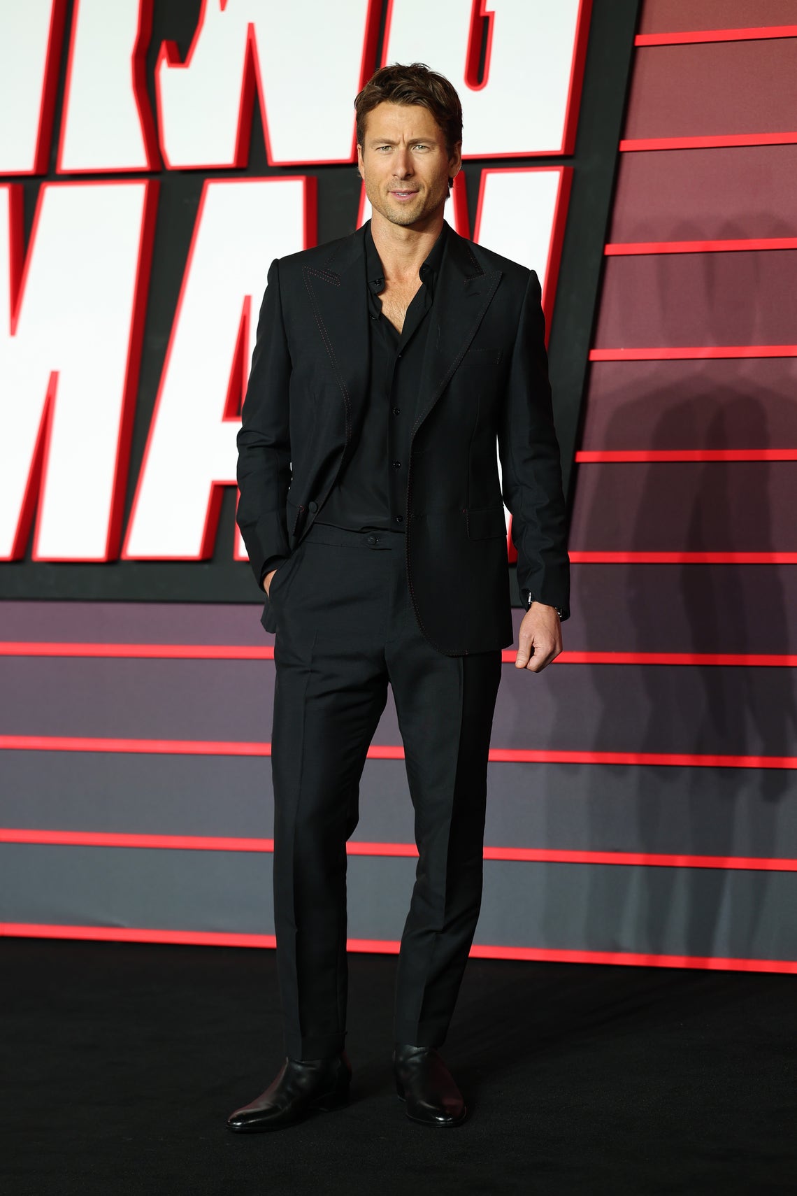 Glen Powell attends “The Running Man” UK Premiere at Odeon Luxe Leicester Square on November 5, 2025 in London, England