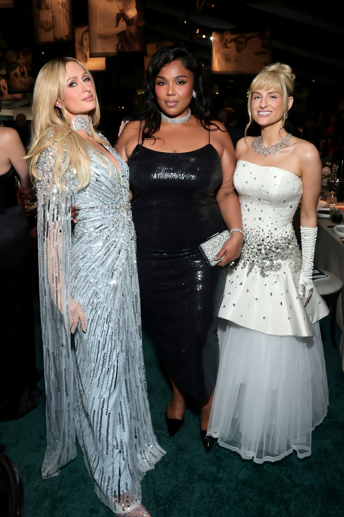 Paris Hilton, Lizzo and Meghan Trainor attend the 2025 Baby2Baby Gala Presented By Paul Mitchell at Pacific Design Center on November 08, 2025 in West Hollywood, California