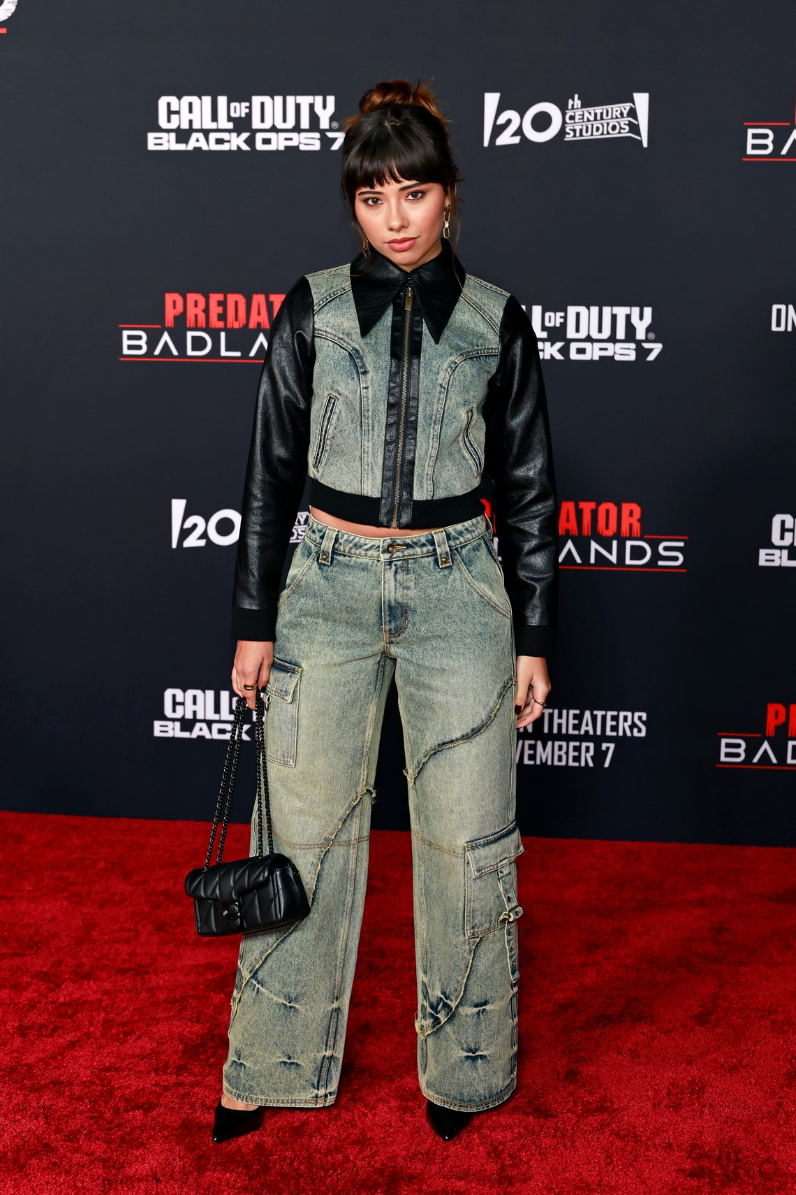 Xochitl Gomez attends the World Premiere of 20th Century Studios “Predator: Badlands” at TCL Chinese Theatre on November 3, 2025 in Hollywood, California