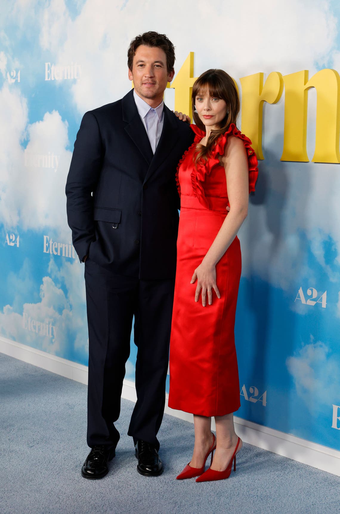 Miles Teller and Elizabeth Olsen attend the Los Angeles special screening of A24’s “Eternity” at AMC Century City 15 on November 5, 2025 in Los Angeles, California
